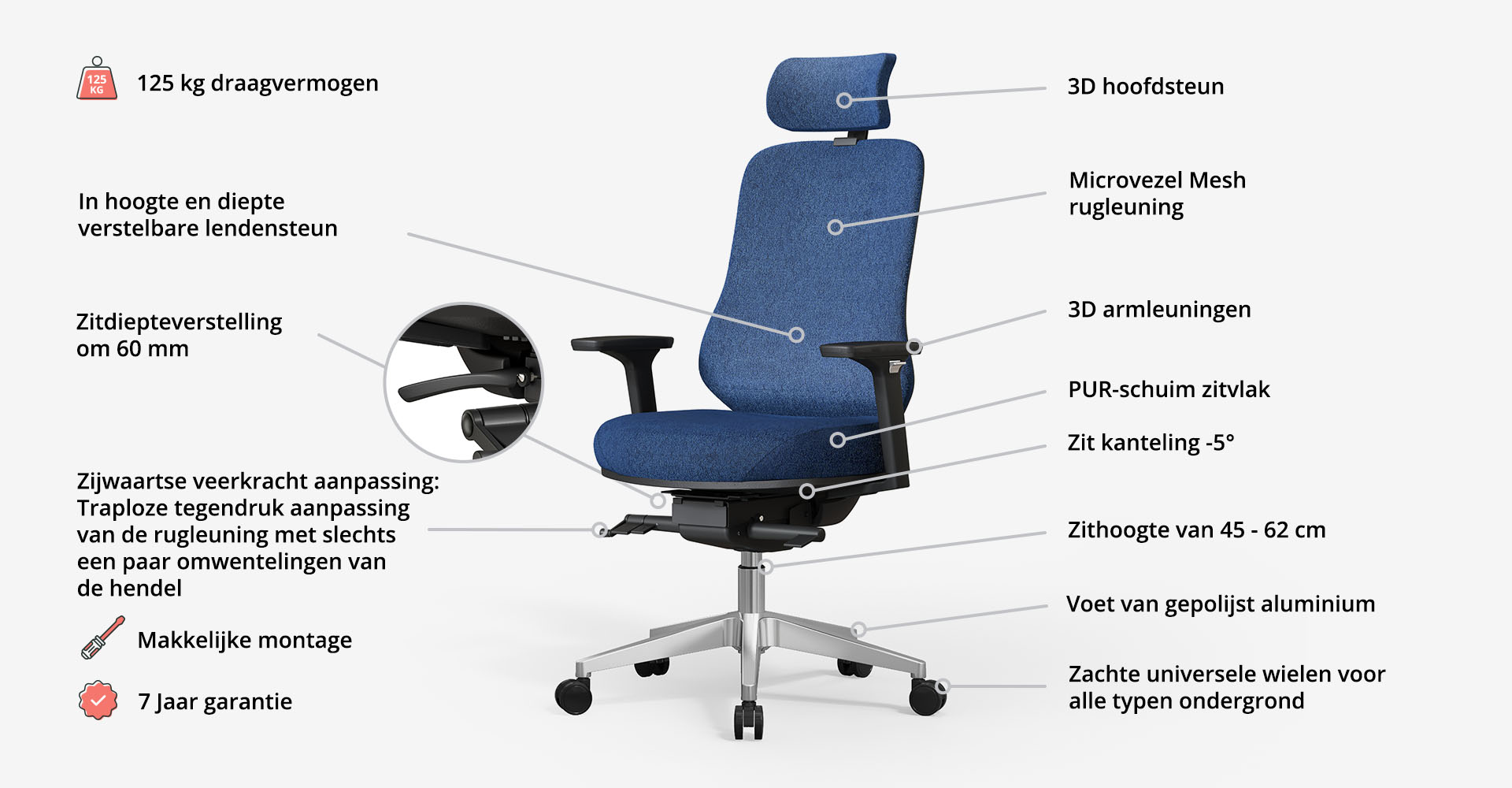 - Draagvermogen: 125 kg